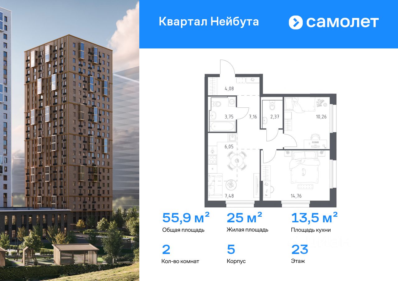 Строим кварталы для жизни с заботой о будущем. Предлагается 2-комнатная квартира комфорт-класса 55,91 кв.м в корпусе 5 на 23 этаже, в ЖК ''Квартал Нейбута'' Квартира с чистовой отделкой. Доступность дополнительных опций уточняйте у застройщика. Приобрести квартиру возможно по специальным акциям от застройщика, с текущими условиями акций можно ознакомиться в блоке ''Акций''. Цена динамическая и может отличаться, уточняйте актуальность у застройщика. ''Квартал Нейбута'' находится в Ленинском районе Владивостока. Дорога до центра города, морского и ж/д вокзалов займет 30 минут на машине или 45 минут на автобусе. Международный аэропорт находится в часе езды от дома. Скоро в квартале будет удобный выезд, откуда можно попасть на трассу Патрокл — Седанка — Де-Фриз — Новый. 26-этажные дома с отделкой золотистых и благородных коричневых оттенков гармонично впишутся в живописный дальневосточный пейзаж. Объем фасадам придают витражные балконы. Закрытые дворы без машин — маленький мир, вдохновленный природой Приморского края. Во дворе найдется занятие для всех жителей квартала. Взрослые смогут устраивать тренировки в спортивных зонах, дети будут веселиться на игровых площадках. А для четвероногих питомцев мы предусмотрели специальные зоны для выгула. Мы отказались от ступенек и порогов у входов в подъезд. Оставить коляску или велосипед можно на первом этаже, в специальном помещении. На подземном этаже предусмотрены кладовые.