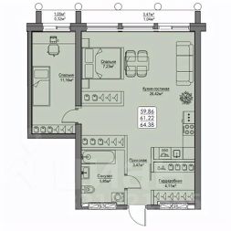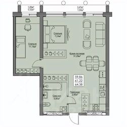 Идеальная квартира для молодой семьиКухня-столовая 17,1 кв.м для семейных завтраков и ужиновПросторная родительская спальня 11,9 кв.м с выходом на лоджию, где можно наслаждаться свежим воздухомУютная детская комната 10,9 кв.м для занятий учебой и отдыхаПрихожая 3,2 кв.м с местом под шкаф-купеВанная комната 5 кв.м в удобном расположении для всех членов семьи