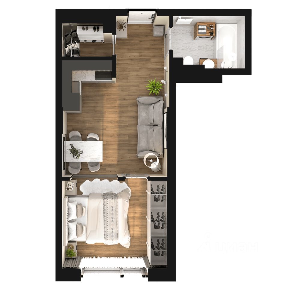 Уютное пространство для самостоятельной жизни Просторная прихожая 5,4 кв.м с местом для шкафа Кухня-столовая 16,7 кв.м место для ваших кулинарных экспериментов и отдыха за домашним кинотеатром Спальня 14,7 кв.м с выходом на лоджию, где можно наслаждаться свежим воздухом и красивым видом на окружающий пейзаж Гардеробная в спальне 2,5 кв.м позволит аккуратно разместить вещи, освободив место в комнате Ванная комната 4,5 кв.м с местом под стиральную машину