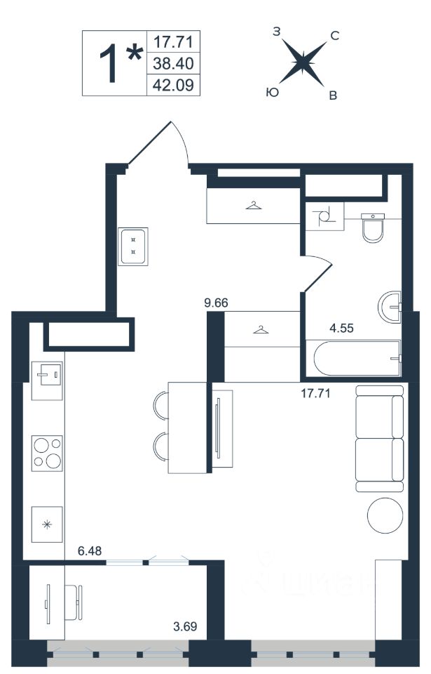 Трехкомнатная квартира с европланировкой от застройщика в ЖК ''Астон. А зори здесь тихие'' на 11 этаже. Квартира без отделки, полностью готова к ремонту. Общая площадь: 66.24 кв.м., жилая: 42.14 кв.м., суммарная площадь гостиной-столовой с кухонной зоной: 22.01 кв.м. Европланировка, за счет большой площади кухни-гостиной квартира выглядит просторной и очень удобна для жизни. Квартира угловая, окна oбecпeчивaют paвнoмepнoe ocвeщeниe в тeчeниe дня. В квартире один балкон, два совмещенных санузла. Высота потолков 2.87 м. Дом монолитный, трехподъездный, высотой 17 этажей. Квартира находится в 1-й секции в корпусе 1. На этаже 4 квартиры. В подъезде 1 пассажирский и 1 грузовой лифт. Окончание строительства - 2 квартал 2028 года. Оформление сделки по договору долевого участия. ''Астон. А зори здесь тихие'' — жилой дом бизнес-класса, состоящий из трёх 17-этажных секций, объединенных общим стилобатом. В каждой секции по 2 лифта (пассажирский и грузопассажирский). Количество квартир на этаже — до 5. Для жителей дома предусмотрены подземный трехуровневый паркинг, кладовые помещения и коммерческая инфраструктура на первом этаже. Территория жилого комплекса продумана так, чтобы ее жителям было безопасно и комфортно: — закрытый двор без машин, система контроля доступа, — детские площадки с учетом разных возрастных групп, — воркаут-зона, — безбарьерная среда, — велопарковки, — колясочные. Срок сдачи: II квартал 2028 года. Расположение: Жилой комплекс расположен на Патрокле — одном из самых быстроразвивающихся районов города. В пешей доступности — парк у озера, четыре пляжа, кофейни, набережная, торговый центр. Рядом расположены несколько школ и детских садов, фитнес-клубы. В 10 минутах езды на автомобиле — Русский остров и бухта Золотой Рог, в 1 минуте — объездная дорога Седанка—Патрокл. Добраться в любую точку города быстро и легко. Способы покупки: — дальневосточная ипотека, — семейная ипотека, — IT-ипотека, — ипотека для участников СВО и их семей, — рассрочка, — рассрочка с дальнейшим выходом в ипотеку. Можно воспользоваться материнским капиталом и региональным сертификатом для частичной оплаты первоначального взноса. О застройщике: Строительство проекта ''Астон. А зори здесь тихие'' осуществляет федеральный застройщик Астон. Проекты Астон — это современные жилые кварталы с вниманием к деталям и продуманным благоустройством в 4 городах России: Екатеринбурге, Новосибирске, Тюмени и Владивостоке. #zmDoBc