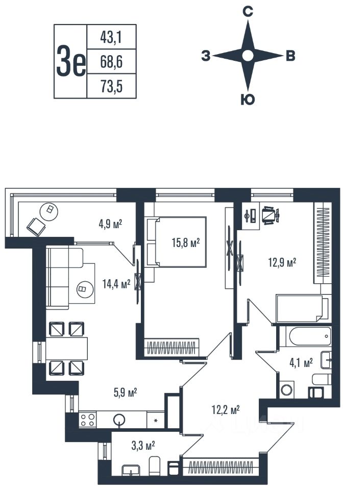 Квартира для тех, кто любит простор Кухня-гостиная — просторная и наполненная светом. Здесь легко зонировать пространство: выделить комфортную кухню, обеденную зону и место для отдыха. А выход на лоджию открывает живописный вид на город, позволяя наслаждаться им в любое время дня Родительская спальня — уединённое пространство с большим окном. Светлая, просторная и продуманная до мелочей. Предусмотрено место под шкаф, чтобы хранение вещей было удобным, а интерьер оставался лёгким и гармоничным Детская — уютная и функциональная. В ней комфортно и играть, и заниматься, а благодаря правильной форме комнаты можно легко организовать удобное пространство Два санузла делают жизнь в квартире ещё комфортнее. Основной с ванной — место для расслабления, а дополнительный позволяет избежать утренних очередей Прихожая и коридор создают удобную навигацию по квартире. Достаточно места для систем хранения, чтобы вещи всегда были под рукой, но не загромождали пространство