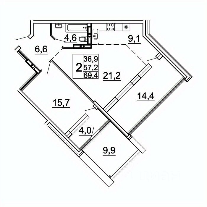 59 м² · Этаж 21 из 24
