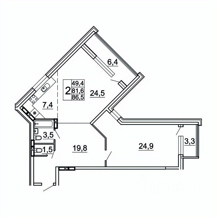 86 м² · Этаж 20 из 24