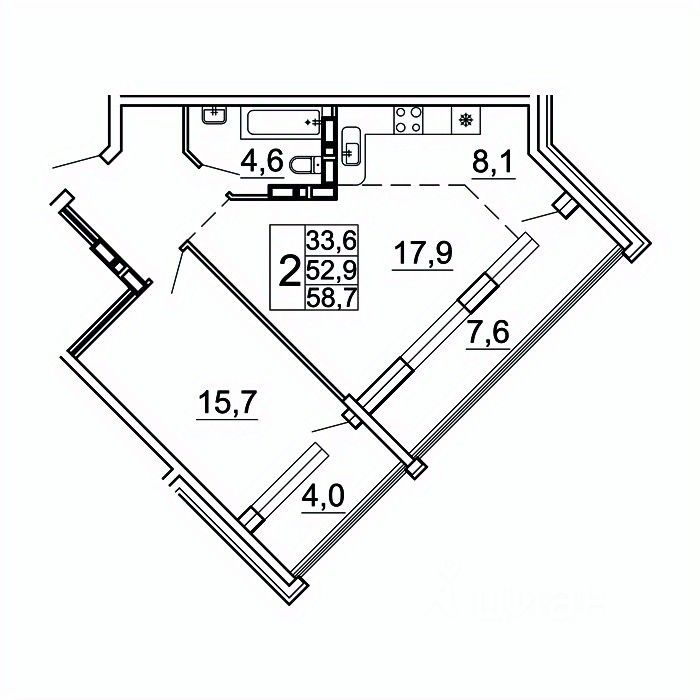 58 м² · Этаж 20 из 24