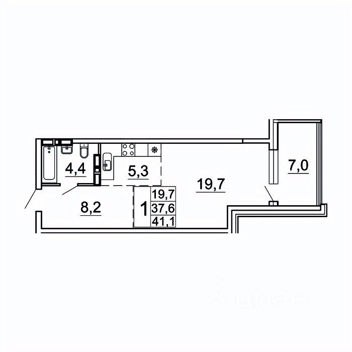 41 м² · Этаж 22 из 24