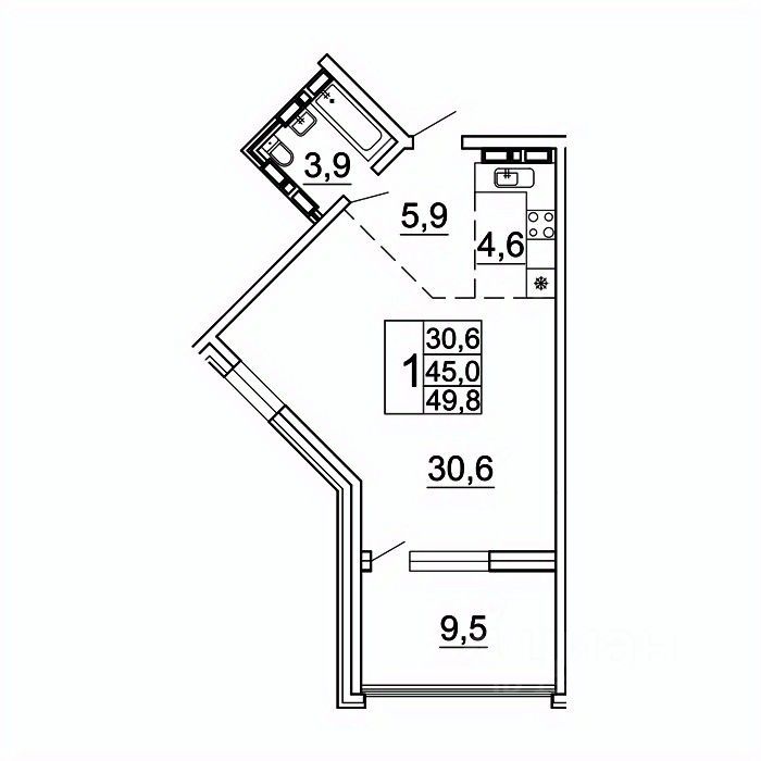 45 м² · Этаж 1 из 24