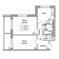 54 м2