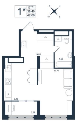 Продаётся 1-комнатная квартира в строящемся доме (Дом 1), срок сдачи: III-кв. 2027, общей площадью 42.09 кв.м., на 17 этаже. Новый жилой комплекс ''Архитектор'' от группы компаний ''Девелопмент-Юг'' расположен по адресу: г. Владивосток, по ул. Бежецкая.
