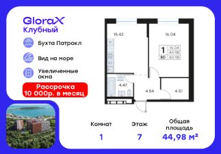 Продается 2-комн. квартира на 12-м этаже в квартале GloraX Клубный. GloraX Клубный - уникальный видовой проект с выделяющейся архитектурой в развитом районе Владивостока. Общая площадь лота составляет 51,34 кв. м, из которых 22,11 кв. м отведено под жилую и 18,28 кв. м под кухонную зону. Номер квартиры - 341.Преимущества квартиры:евро-трехкомнатная квартира, вид на море.Преимущества проекта:• Квартиры с панорамными видами на бухту Патрокл, маяк Басаргина и остров Русский• Планировочные решения под любой жизненный сценарий от 23 до 67 м²• Гардеробные комнаты, увеличенные панорамные окна, просторные кухни-гостиные• Эксклюзивное благоустройство: продуманное зонирование, игровые и спортивные площадки, площадка для стритбола, амфитеатр• Премиальный дизайн входных групп с лаунж-зоной• Безбарьерная среда, закрытая территория, видеонаблюдение• Лапомойки, колясочные и туалеты на первом этаже• Двухуровневый подземный паркинг на 350 машино-мест с лифтом на жилые этажи• Келлеры на цокольном этаже для хранения сезонных вещей с доступом на лифте• Современный ландшафтный дизайн комплекса от DEREVOPARKGloraX Клубный заповедник в черте мегаполиса. Комплекс тщательно продуман для максимального удобства и обеспечения безопасности его жителей. Квартал расположен в одном из самых современных развивающихся районов города: совсем рядом раскинулась живописная бухта Патрокл, где можно прогуляться по облагороженной пешеходной набережной, заглянуть на пляж или в школу серфинга. Комплекс имеет прекрасную транспортную доступность: рядом проходит объездная трасса СеданкаПатрокл, а до центар можно доехать всего за 15 минут.Проект включает 3 монолитных корпуса, каждый из которых спроектирован с акцентом на комфорт, безопасность и современный образ жизни рядом с уникальной природой. Общий двор создает приватную территорию для житей комплекса.В комплексе предусмотрен двухуровневый подземный паркинг на 350 машино-мест с доступом прямо с жилых этажей. Паркинг оборудован современными системами видеонаблюдения, контроля въезда-выезда и пожаротушения. На цокольном этаже размещаются келлеры для хранения сезонных и габаритных вещей. Доступ к кладовым на лифте с жилых этажей. Современный ландшафтный дизайн жилого комплекса GloraX Клубный создан ведущей российской студией DEREVOPARK. Во дворе для детей всех возрастов предусмотрены различные игровые площадки с лазалками, батутами, качелями и песочницей. В центре расположен специальный ''зеленый остров'', где взрослые могут отдохнуть на качелях и гамаках в тени больших деревьев. Для любителей спорта предусмотрены две специальные спортивные площадки для настольного тенниса и стритбола — для зрителей тоже найдется место! А еще на территории комплекса будет дорожка для роллеров и любителей покататься на велосипеде, самокате или скейте.В шаговой доступности располагаются все необходимые объекты социальной и коммерческой инфраструктуры.Цена указана пр
