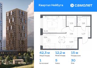 Предлагается 1-комнатная квартира комфорт-класса 42,34 кв.м в корпусе 5 на 30 этаже, в ЖК ''Квартал Нейбута''Квартира с чистовой отделкой. Доступность дополнительных опций уточняйте у застройщика.Приобрести квартиру возможно по специальным акциям от застройщика, с текущими условиями акций можно ознакомиться в блоке ''Акций''.Цена динамическая и может отличаться, уточняйте актуальность у застройщика.В новом ''Квартале Нейбута'' захочется освободить галерею телефона — чтобы вместить коллекцию по-настоящему захватывающих кадров. В объектив вашей камеры попадут зеленые сопки, бескрайнее небо и другие красоты Приморского края. Квартал находится в одном из районов Владивостока, откуда легко добраться в любую точку города. Дорога до центра города, морского и ж/д вокзалов займет 30 минут на машине или 45 минут на автобусе. Планировать отпуск тоже удобно — международный аэропорт находится в часе езды от дома. Скоро в квартале будет удобный выезд на улицы Нейбута и Фадеева, откуда можно попасть на трассу Патрокл — Седанка — Де-Фриз — Новый. А к старту первой очереди будет готов северный заезд с твердым покрытием. В квартале можно выйти из дома и оказаться в большом парке с экотропами и прогулочными зонами. Выходите на пробежку или на познавательную прогулку с детьми — можно долго рассматривать растения и искать их названия в интернете. Побродите по тропам для терренкура и обязательно побывайте на смотровых площадках — ваша коллекция впечатлений точно пополнится. Вечером отправляйтесь полюбоваться на вантовый мост в свете огней. Вид на него откроется из бухты Золотой Рог, дорога до которой займет 20 минут на авто. Чтобы решать все повседневные дела, даже не обязательно далеко уходить от дома. На первых этажах корпусов откроются салоны красоты, магазины, пункты выдачи и кафе. Забегайте за утренним латте, новой прической или продуктами к обеду. Юным жителям квартала тоже не придется долго шагать по своим важным делам. Рядом с кварталом находятся 3 детских сада, общеобразовательная и школа искусств и развивающий центр ''Пчелкин дом''. А скоро недалеко от проекта появится еще одна школа на 1100 учеников. Ее планируют строить в 2026 году. 26-этажные дома с отделкой золотистых и благородных коричневых оттенков гармонично впишутся в живописный дальневосточный пейзаж. Объем фасадам придают витражные балконы, с которых открываются виды на Уссурийский залив. Закрытые дворы без машин — маленький мир, вдохновленный природой Приморского края. Стены домов украшают дальневосточные лианы, крыши — пышные ковры из трав. Еще мы установим дождевые сады, которые скроют последствия даже самого сильного ливня. Во дворе найдется интересное занятие для всех жителей квартала. Взрослые смогут устраивать тренировки на свежем воздухе в спортивных зонах, дети будут целый день веселиться на игровых площадках. А для четвероногих питомцев мы предусмотрели специальные зоны для выгула. Возвращайтесь домой из отпуска с чемоданом сувениров или самокатом из парка. Мы отказались