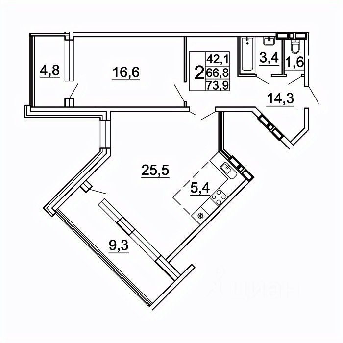 73 м² · Этаж 14 из 24