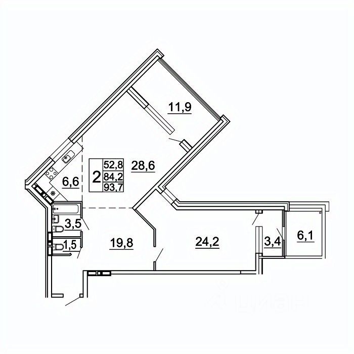 93 м² · Этаж 17 из 24