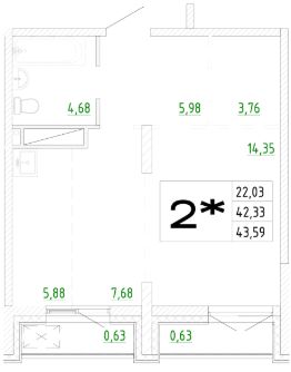 Продаётся 2-комнатная квартира в строящемся доме (Дом 1), срок сдачи: III-кв. 2027, общей площадью 43.59 кв.м., на 2 этаже. Новый жилой комплекс ''Архитектор'' от группы компаний ''Девелопмент-Юг'' расположен по адресу: г. Владивосток, по ул. Бежецкая.