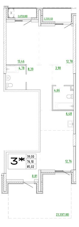 Продаётся 3-комнатная квартира в строящемся доме (Дом 1), срок сдачи: III-кв. 2027, общей площадью 85.02 кв.м., на 1 этаже. Новый жилой комплекс ''Архитектор'' от группы компаний ''Девелопмент-Юг'' расположен по адресу: г. Владивосток, по ул. Бежецкая.