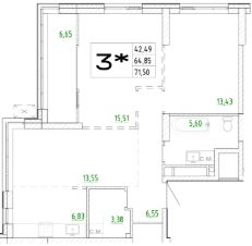 Продаётся 3-комнатная квартира в строящемся доме (Дом 1), срок сдачи: III-кв. 2027, общей площадью 71.5 кв.м., на 7 этаже. Новый жилой комплекс ''Архитектор'' от группы компаний ''Девелопмент-Юг'' расположен по адресу: г. Владивосток, по ул. Бежецкая.