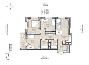 Длинный коридор 8,6 кв.м. с широким пространством под хранение, которого хватит всей семье Детская 10,8 кв.м. подойдёт для активных игр или комфортной учёбыСанузел 4,1 кв.м. вместит и большую ванну, и стиральную машину Кухня 10,7 кв.м. для семейных завтраков и ужиновБалкон 4,3 кв.м. с видом во двор, чтобы не беспокоиться о безопасности ребёнка, а наслаждаться архитектуройГостиная 14,5 кв.м. для киномарафонов по выходным