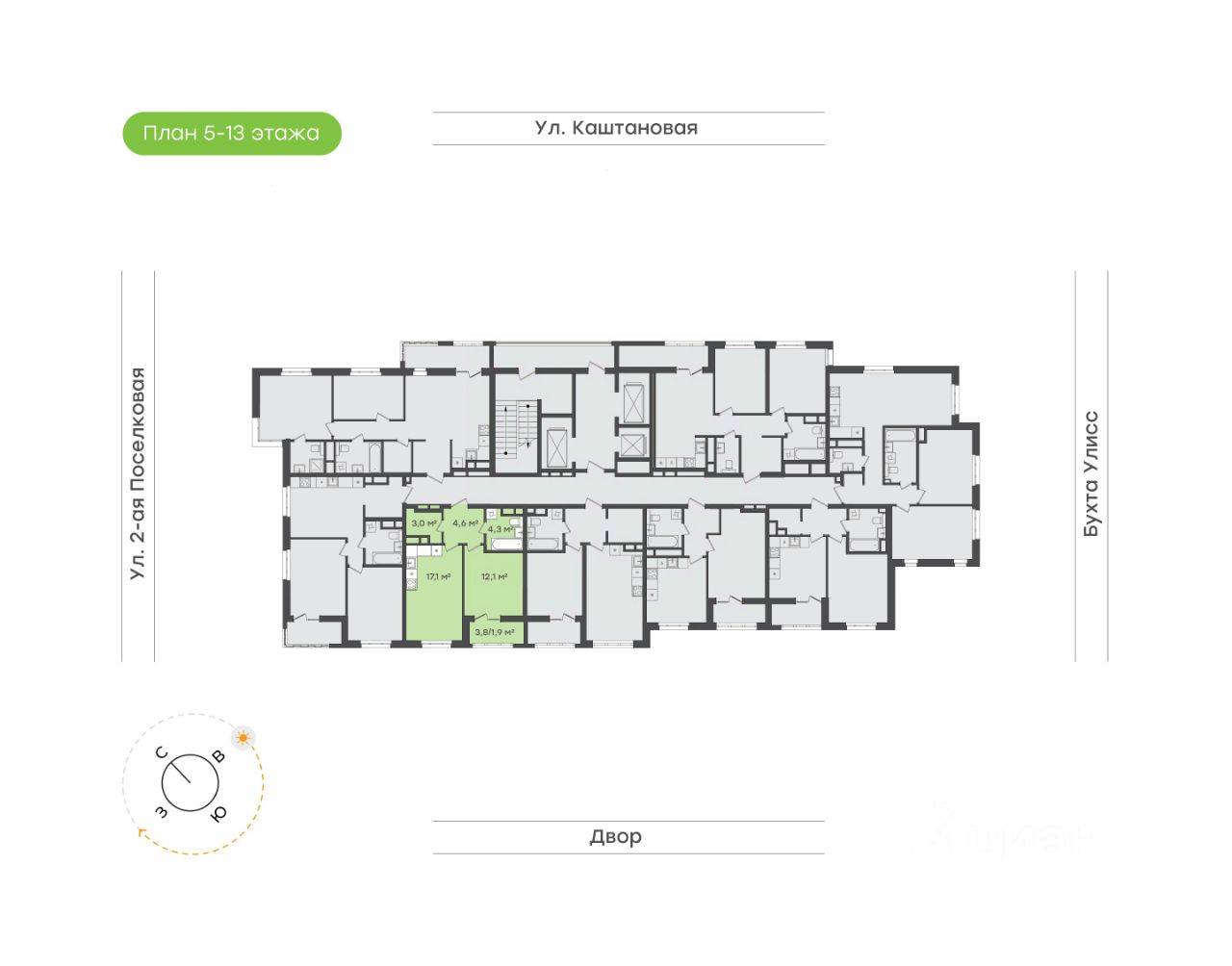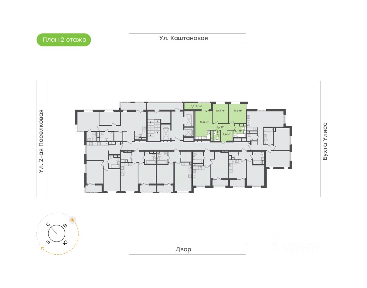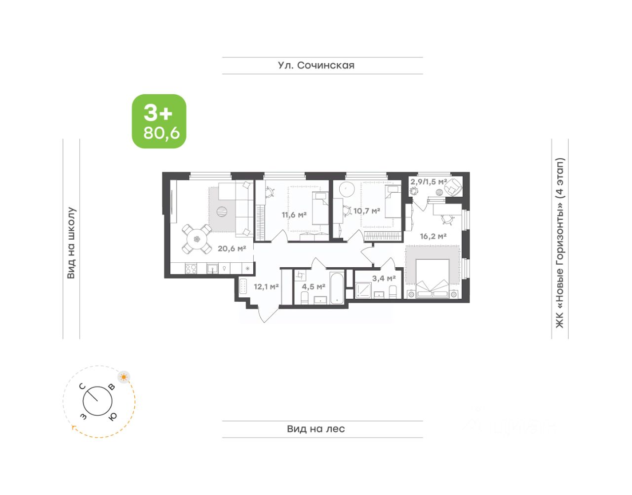 Вид на морские бухты и закаты Коридор 5,4 кв.м. с местом под шкаф-купе для утренних прощаний и радостных вечерних встреч Кухня-гостиная 17,8 кв.м. для самых смелых кулинарных экспериментов Раздельные санузел 3,7 кв.м. и ванная 4 кв.м. для удобства большой семьи Одна детская 10,3 кв.м. с видом на лесной массив с пространством для учебы и игр Вторая детская 10,4 кв.м. с выходом на балкон и видом на морские пейзажи Спальня 11,5 кв.м. для тихого уединения и наслаждения видами на природу, море и закаты