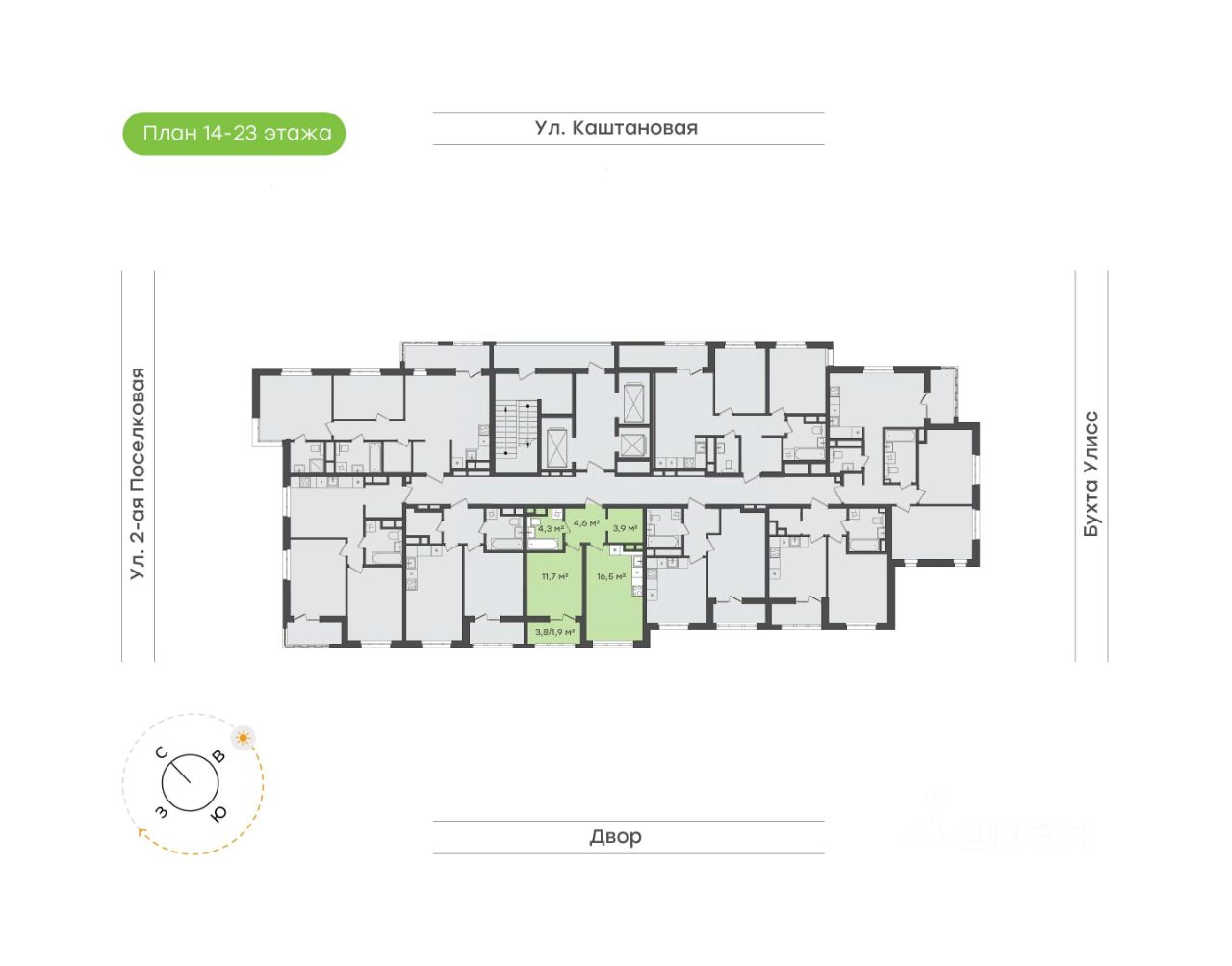 Комфортное пространство для жизни и отдыха Кухня-столовая 16,5 кв.м это идеальное место для приготовления вкусной еды и уютных посиделок за столом в кругу семьи и друзей Просторная прихожая 4,6 кв.м с гардеробной 3,9 кв.м, где удобно организовать хранение вещей Спальня 11,7 кв.м с выходом на лоджию - это уютный уголок, где можно наслаждаться утренним кофе с прекрасным видом Ванная 4,3 кв.м с местом под стиральную машину