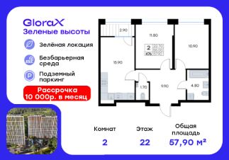 Продается 1-комн. квартира на 18-м этаже в жилом квартале GloraX Зелёные высоты — проекте в тихой зелёной локации. Общая площадь квартиры 36,10 кв. м, из которых 10,50 кв. м включая 10,50 кв. м жилого пространства и 13,80 кв. м кухни. Номер квартиры - 175.Преимущества квартиры:компактная евро-2, лоджия.Преимущества проекта:• Идеальное сочетание городской и загородной жизни• Сдаем в 2025 году• Уютный зелёный район с развитой инфраструктурой• Великолепные виды на Вечнозеленый сквер и лесопарк на 150 Га• Видеонаблюдение, IP-домофон, Wi-Fi на территории,• Дизайнерские входные группы• Безбарьерная среда, колясочные, туалеты на 1 этаже, лапомойки• Эксклюзивное благоустройство территории • Подземный паркинг на 235 машино-мест с лифтом на жилые этажи• Индивидуальные кладовые от 3 до 7 кв. м• Черновая отделка для реализации любых дизайнерских идейGloraX Зелёные высоты — современный жилой проект, сочетающий преимущества городской и пригородной жизни. Комплекс тщательно продуман для максимального удобства и обеспечения безопасности жителей. Квартал расположен в зеленом, живописном и активно развивающемся районе Зеленый Угол, вдали от серой массовой застройки. Жители GloraX Зелёные высоты смогут насладждаться прогулками в Вечнозелёном сквере или лесопарке. В непосредственной близости находятся остановки общественного транспорта и автомобильный подъезд со стороны Нейбута. Скоро также появится выездом на трассу Де-Фриз-Седанка, что обеспечит быстрый доступ в любую часть города и пригород.Проект включает 2 корпуса, каждый из которых спроектирован с акцентом на комфорт, безопасность и современный образ жизни.В комплексе предусмотрен подземный паркинг на 235 машиномест с доступом прямо с жилых этажей. Паркинг оборудован современными системами видеонаблюдения, контроля въезда-выезда и пожаротушения. Цокольный этаж здания отведен под индивидуальные кладовые площадью от 3 до 7 квадратных метров, которые можно использовать для хранения сезонных вещей. Доступ к кладовым - на лифте с жилых этажей.Территория жилого квартала благоустроена и включает игровые зоны и спортивные площадки для детей различных возрастных групп, уютные зоны отдыха со скамейками и универсальную воркаут-площадку для активного досуга.В шаговой доступности располагаются все необходимые объекты социальной инфраструктуры.Узнайте больше в отделе продаж — выберите свою квартиру в GloraX Зелёные высоты уже сегодня!
