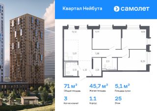 Предлагается 3-комнатная квартира комфорт-класса 70,97 кв.м в корпусе 1.1 на 25 этаже, в ЖК ''Квартал Нейбута''Квартира с чистовой отделкой. Доступность дополнительных опций уточняйте у застройщика.Приобрести квартиру возможно по специальным акциям от застройщика, с текущими условиями акций можно ознакомиться в блоке ''Акций''.Цена динамическая и может отличаться, уточняйте актуальность у застройщика.В новом ''Квартале Нейбута'' захочется освободить галерею телефона — чтобы вместить коллекцию по-настоящему захватывающих кадров. В объектив вашей камеры попадут зеленые сопки, бескрайнее небо и другие красоты Приморского края. Квартал находится в одном из районов Владивостока, откуда легко добраться в любую точку города. Дорога до центра города, морского и ж/д вокзалов займет 30 минут на машине или 45 минут на автобусе. Планировать отпуск тоже удобно — международный аэропорт находится в часе езды от дома. Скоро в квартале будет удобный выезд на улицы Нейбута и Фадеева, откуда можно попасть на трассу Патрокл — Седанка — Де-Фриз — Новый. А к старту первой очереди будет готов северный заезд с твердым покрытием. В квартале можно выйти из дома и оказаться в большом парке с экотропами и прогулочными зонами. Выходите на пробежку или на познавательную прогулку с детьми — можно долго рассматривать растения и искать их названия в интернете. Побродите по тропам для терренкура и обязательно побывайте на смотровых площадках — ваша коллекция впечатлений точно пополнится. Вечером отправляйтесь полюбоваться на вантовый мост в свете огней. Вид на него откроется из бухты Золотой Рог, дорога до которой займет 20 минут на авто. Чтобы решать все повседневные дела, даже не обязательно далеко уходить от дома. На первых этажах корпусов откроются салоны красоты, магазины, пункты выдачи и кафе. Забегайте за утренним латте, новой прической или продуктами к обеду. Юным жителям квартала тоже не придется долго шагать по своим важным делам. Рядом с кварталом находятся 3 детских сада, общеобразовательная и школа искусств и развивающий центр ''Пчелкин дом''. А скоро недалеко от проекта появится еще одна школа на 1100 учеников. Ее планируют строить в 2026 году. 26-этажные дома с отделкой золотистых и благородных коричневых оттенков гармонично впишутся в живописный дальневосточный пейзаж. Объем фасадам придают витражные балконы, с которых открываются виды на Уссурийский залив. Закрытые дворы без машин — маленький мир, вдохновленный природой Приморского края. Стены домов украшают дальневосточные лианы, крыши — пышные ковры из трав. Еще мы установим дождевые сады, которые скроют последствия даже самого сильного ливня. Во дворе найдется интересное занятие для всех жителей квартала. Взрослые смогут устраивать тренировки на свежем воздухе в спортивных зонах, дети будут целый день веселиться на игровых площадках. А для четвероногих питомцев мы предусмотрели специальные зоны для выгула. Возвращайтесь домой из отпуска с чемоданом сувениров или самокатом из парка. Мы отказалис