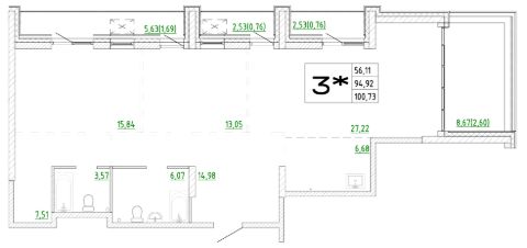 Продаётся 3-комнатная квартира в строящемся доме (Дом 1), срок сдачи: III-кв. 2027, общей площадью 100.73 кв.м., на 1 этаже. Новый жилой комплекс ''Архитектор'' от группы компаний ''Девелопмент-Юг'' расположен по адресу: г. Владивосток, по ул. Бежецкая.