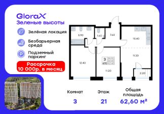 Продается 3-комн. квартира на 23-м этаже в жилом квартале GloraX Зелёные высоты — проекте в тихой зелёной локации. Общая площадь квартиры 62,60 кв. м, из которых 34,90 кв. м включая 34,90 кв. м жилого пространства и 10,40 кв. м кухни. Номер квартиры - 492.Преимущества квартиры:просторная 2 к.кв., лоджия.Преимущества проекта:• Идеальное сочетание городской и загородной жизни• Сдаем в 2025 году• Уютный зелёный район с развитой инфраструктурой• Великолепные виды на Вечнозеленый сквер и лесопарк на 150 Га• Видеонаблюдение, IP-домофон, Wi-Fi на территории,• Дизайнерские входные группы• Безбарьерная среда, колясочные, туалеты на 1 этаже, лапомойки• Эксклюзивное благоустройство территории • Подземный паркинг на 235 машино-мест с лифтом на жилые этажи• Индивидуальные кладовые от 3 до 7 кв. м• Черновая отделка для реализации любых дизайнерских идейGloraX Зелёные высоты — современный жилой проект, сочетающий преимущества городской и пригородной жизни. Комплекс тщательно продуман для максимального удобства и обеспечения безопасности жителей. Квартал расположен в зеленом, живописном и активно развивающемся районе Зеленый Угол, вдали от серой массовой застройки. Жители GloraX Зелёные высоты смогут насладждаться прогулками в Вечнозелёном сквере или лесопарке. В непосредственной близости находятся остановки общественного транспорта и автомобильный подъезд со стороны Нейбута. Скоро также появится выездом на трассу Де-Фриз-Седанка, что обеспечит быстрый доступ в любую часть города и пригород.Проект включает 2 корпуса, каждый из которых спроектирован с акцентом на комфорт, безопасность и современный образ жизни.В комплексе предусмотрен подземный паркинг на 235 машиномест с доступом прямо с жилых этажей. Паркинг оборудован современными системами видеонаблюдения, контроля въезда-выезда и пожаротушения. Цокольный этаж здания отведен под индивидуальные кладовые площадью от 3 до 7 квадратных метров, которые можно использовать для хранения сезонных вещей. Доступ к кладовым - на лифте с жилых этажей.Территория жилого квартала благоустроена и включает игровые зоны и спортивные площадки для детей различных возрастных групп, уютные зоны отдыха со скамейками и универсальную воркаут-площадку для активного досуга.В шаговой доступности располагаются все необходимые объекты социальной инфраструктуры.Узнайте больше в отделе продаж — выберите свою квартиру в GloraX Зелёные высоты уже сегодня!
