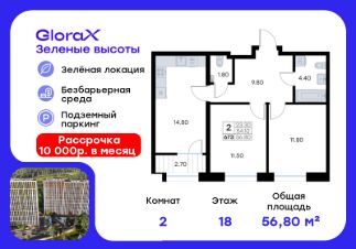 Продается 2-комн. квартира на 19-м этаже в жилом квартале GloraX Зелёные высоты — проекте в тихой зелёной локации. Общая площадь квартиры 57,90 кв. м, из которых 22,70 кв. м включая 22,70 кв. м жилого пространства и 15,90 кв. м кухни. Номер квартиры - 443.Преимущества квартиры:компактная евро-3, лоджия.Преимущества проекта:• Идеальное сочетание городской и загородной жизни• Сдаем в 2025 году• Уютный зелёный район с развитой инфраструктурой• Великолепные виды на Вечнозеленый сквер и лесопарк на 150 Га• Видеонаблюдение, IP-домофон, Wi-Fi на территории,• Дизайнерские входные группы• Безбарьерная среда, колясочные, туалеты на 1 этаже, лапомойки• Эксклюзивное благоустройство территории • Подземный паркинг на 235 машино-мест с лифтом на жилые этажи• Индивидуальные кладовые от 3 до 7 кв. м• Черновая отделка для реализации любых дизайнерских идейGloraX Зелёные высоты — современный жилой проект, сочетающий преимущества городской и пригородной жизни. Комплекс тщательно продуман для максимального удобства и обеспечения безопасности жителей. Квартал расположен в зеленом, живописном и активно развивающемся районе Зеленый Угол, вдали от серой массовой застройки. Жители GloraX Зелёные высоты смогут насладждаться прогулками в Вечнозелёном сквере или лесопарке. В непосредственной близости находятся остановки общественного транспорта и автомобильный подъезд со стороны Нейбута. Скоро также появится выездом на трассу Де-Фриз-Седанка, что обеспечит быстрый доступ в любую часть города и пригород.Проект включает 2 корпуса, каждый из которых спроектирован с акцентом на комфорт, безопасность и современный образ жизни.В комплексе предусмотрен подземный паркинг на 235 машиномест с доступом прямо с жилых этажей. Паркинг оборудован современными системами видеонаблюдения, контроля въезда-выезда и пожаротушения. Цокольный этаж здания отведен под индивидуальные кладовые площадью от 3 до 7 квадратных метров, которые можно использовать для хранения сезонных вещей. Доступ к кладовым - на лифте с жилых этажей.Территория жилого квартала благоустроена и включает игровые зоны и спортивные площадки для детей различных возрастных групп, уютные зоны отдыха со скамейками и универсальную воркаут-площадку для активного досуга.В шаговой доступности располагаются все необходимые объекты социальной инфраструктуры.Узнайте больше в отделе продаж — выберите свою квартиру в GloraX Зелёные высоты уже сегодня!