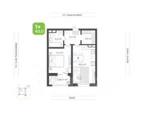 Комфортное пространство для жизни и отдыхаКухня-столовая 16,5 кв.м это идеальное место для приготовления вкусной еды и уютных посиделок за столом в кругу семьи и друзейПросторная прихожая 4,6 кв.м с гардеробной 3,9 кв.м, где удобно организовать хранение вещейСпальня 11,7 кв.м с выходом на лоджию - это уютный уголок, где можно наслаждаться утренним кофе с прекрасным видомВанная 4,3 кв.м с местом под стиральную машину