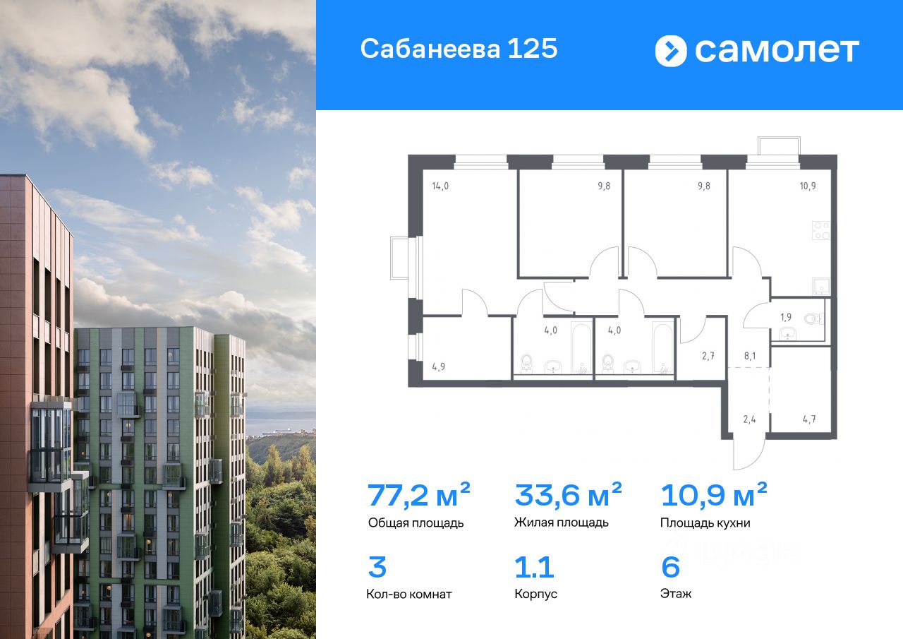 Строим кварталы для жизни с заботой о будущем. Предлагается 3-комнатная квартира комфорт-класса 77,2 кв.м в корпусе 1.1 на 6 этаже, в ЖК ''Сабанеева 125'' Квартира без отделки. Доступность опции ''отделка'' и возможность комплектации мебелью и декором уточняйте у застройщика. Приобрести квартиру возможно по специальным акциям от застройщика, с текущими условиями акций можно ознакомиться в блоке ''Акций''. Цена динамическая и может отличаться, уточняйте актуальность у застройщика. В жилом комплексе ''Сабанеева 125'' вы ежедневно будете наслаждаться видами сопок. Холмистый рельеф защищает территорию от ветра. Комплекс расположен в Первореченском районе Владивостока, всего в 20 минутах на машине до центра города. На первых этажах откроются супермаркеты, кафе и пекарни. Для малышей — детский сад в 2 минутах пешком и школа в 10 минутах. За 6 минут можно доехать до Нагорного парка, а за 15 минут — до набережной Цесаревича с панорамой Золотого моста. Комплекс состоит из 3 монолитных домов высотой 25 этажей с фасадами, дизайн которых вдохновлен птицами Дальнего Востока. Дворы оформлены как сад с дальневосточной флорой, есть смотровые площадки, скалодром, перголы и игровые зоны для детей. Подземный паркинг — трехуровневый. В сквозные подъезды без ступеней и с помещением для колясок удобно заходить. В жилом комплексе ''Сабанеева 125'' есть квартиры с индивидуальными зелеными террасами, увеличенными окнами и панорамными балконами для чаепитий с видом на сопки и залив.