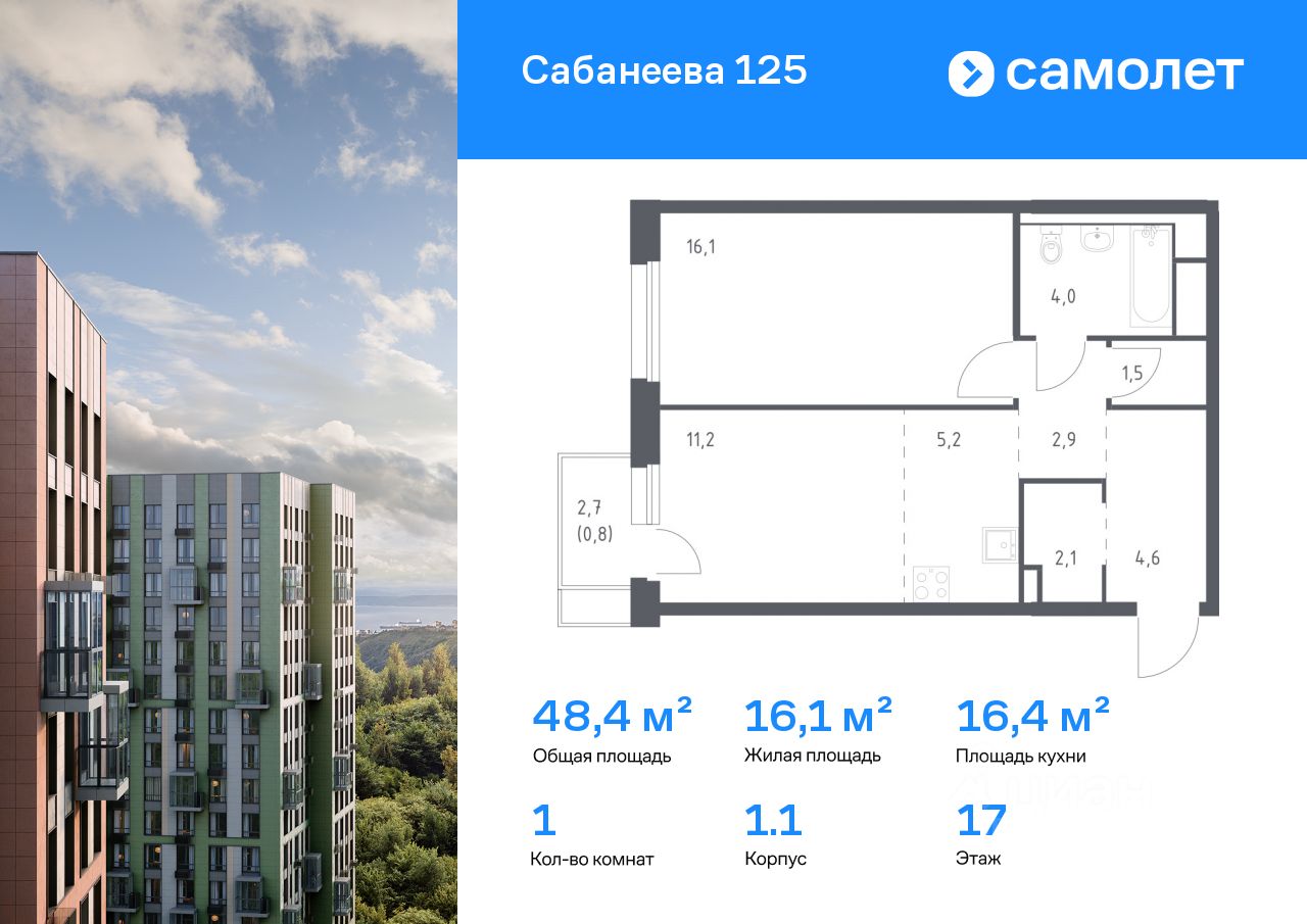 Строим кварталы для жизни с заботой о будущем. Предлагается 1-комнатная квартира комфорт-класса 48,4 кв.м в корпусе 1.1 на 17 этаже, в ЖК ''Сабанеева 125'' Квартира без отделки. Доступность опции ''отделка'' и возможность комплектации мебелью и декором уточняйте у застройщика. Приобрести квартиру возможно по специальным акциям от застройщика, с текущими условиями акций можно ознакомиться в блоке ''Акций''. Цена динамическая и может отличаться, уточняйте актуальность у застройщика. В жилом комплексе ''Сабанеева 125'' вы ежедневно будете наслаждаться видами сопок. Холмистый рельеф защищает территорию от ветра. Комплекс расположен в Первореченском районе Владивостока, всего в 20 минутах на машине до центра города. На первых этажах откроются супермаркеты, кафе и пекарни. Для малышей — детский сад в 2 минутах пешком и школа в 10 минутах. За 6 минут можно доехать до Нагорного парка, а за 15 минут — до набережной Цесаревича с панорамой Золотого моста. Комплекс состоит из 3 монолитных домов высотой 25 этажей с фасадами, дизайн которых вдохновлен птицами Дальнего Востока. Дворы оформлены как сад с дальневосточной флорой, есть смотровые площадки, скалодром, перголы и игровые зоны для детей. Подземный паркинг — трехуровневый. В сквозные подъезды без ступеней и с помещением для колясок удобно заходить. В жилом комплексе ''Сабанеева 125'' есть квартиры с индивидуальными зелеными террасами, увеличенными окнами и панорамными балконами для чаепитий с видом на сопки и залив.