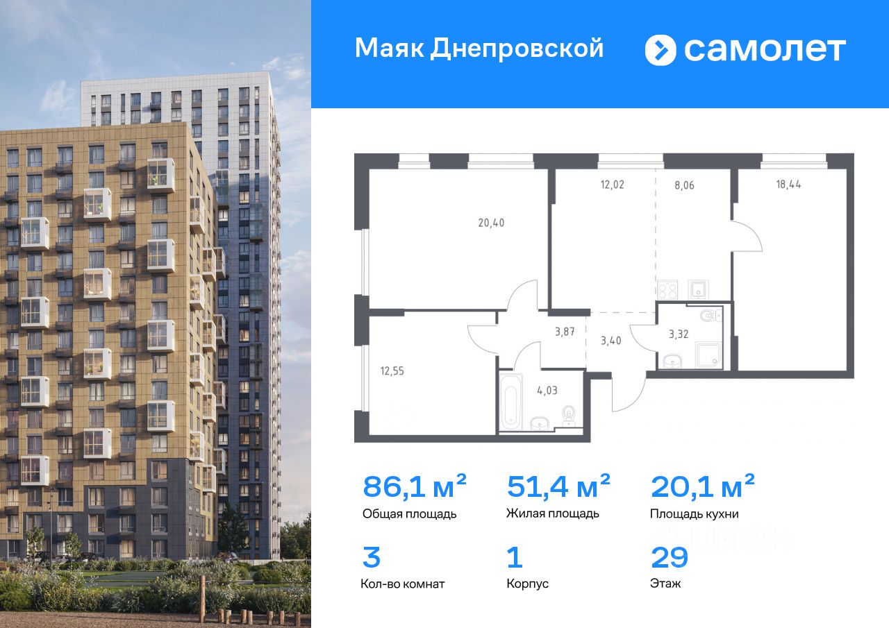 Строим кварталы для жизни с заботой о будущем. Предлагается 3-комнатная квартира комфорт-класса 86,09 кв.м в корпусе 1 на 29 этаже, в ЖК ''Маяк Днепровской'' Квартира без отделки. Доступность опции ''отделка'' и возможность комплектации мебелью и декором уточняйте у застройщика. Приобрести квартиру возможно по специальным акциям от застройщика, с текущими условиями акций можно ознакомиться в блоке ''Акций''. Цена динамическая и может отличаться, уточняйте актуальность у застройщика. ''Маяк Днепровской'' — это маленький город с домами высотой от 17 до 30 этажей. Мы строим современные здания со стилобатами и террасами, которые отвечают архитектурным трендам, но при этом гармонично вписываются в окружающие пейзажи. Переменная этажность домов повторяет уникальный дальневосточный ландшафт, а оттенки фасадов перекликаются с красками природы. Здесь вы будете любоваться живописными закатами и встречать рассветы с панорамного балкона.