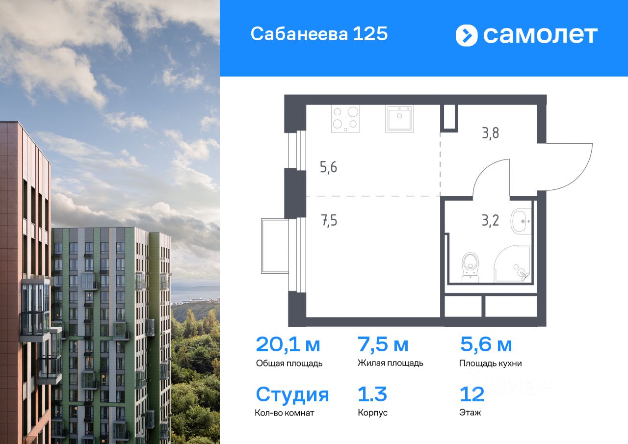 Строим кварталы для жизни с заботой о будущем. Предлагается квартира студия комфорт-класса 20,1 кв.м в корпусе 1.3 на 12 этаже, в ЖК ''Сабанеева 125'' Квартира без отделки. Доступность опции ''отделка'' и возможность комплектации мебелью и декором уточняйте у застройщика. Приобрести квартиру возможно по специальным акциям от застройщика, с текущими условиями акций можно ознакомиться в блоке ''Акций''. Цена динамическая и может отличаться, уточняйте актуальность у застройщика. В жилом комплексе ''Сабанеева 125'' вы ежедневно будете наслаждаться видами сопок. Холмистый рельеф защищает территорию от ветра. Комплекс расположен в Первореченском районе Владивостока, всего в 20 минутах на машине до центра города. На первых этажах откроются супермаркеты, кафе и пекарни. Для малышей — детский сад в 2 минутах пешком и школа в 10 минутах. За 6 минут можно доехать до Нагорного парка, а за 15 минут — до набережной Цесаревича с панорамой Золотого моста. Комплекс состоит из 3 монолитных домов высотой 25 этажей с фасадами, дизайн которых вдохновлен птицами Дальнего Востока. Дворы оформлены как сад с дальневосточной флорой, есть смотровые площадки, скалодром, перголы и игровые зоны для детей. Подземный паркинг — трехуровневый. В сквозные подъезды без ступеней и с помещением для колясок удобно заходить. В жилом комплексе ''Сабанеева 125'' есть квартиры с индивидуальными зелеными террасами, увеличенными окнами и панорамными балконами для чаепитий с видом на сопки и залив.