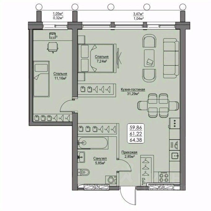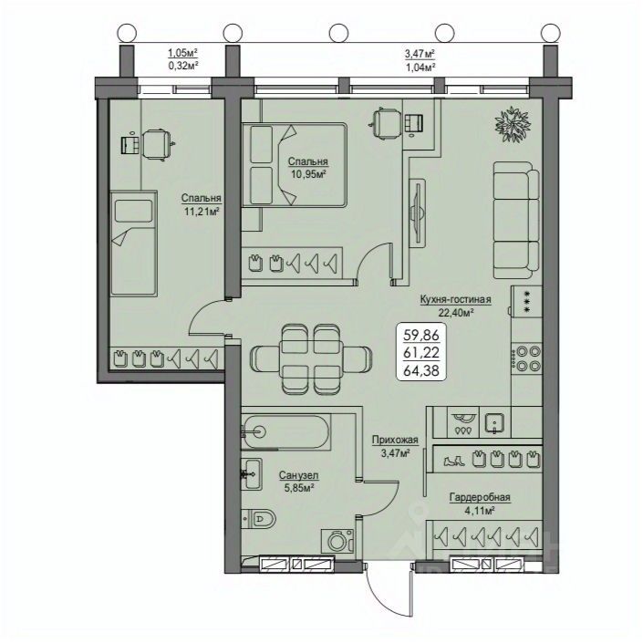 Строим кварталы для жизни с заботой о будущем. Предлагается 2-комнатная квартира комфорт-класса 62,2 кв.м в корпусе 1.3 на 24 этаже, в ЖК ''Сабанеева 125'' Квартира без отделки. Доступность опции ''отделка'' и возможность комплектации мебелью и декором уточняйте у застройщика. Приобрести квартиру возможно по специальным акциям от застройщика, с текущими условиями акций можно ознакомиться в блоке ''Акций''. Цена динамическая и может отличаться, уточняйте актуальность у застройщика. В жилом комплексе ''Сабанеева 125'' вы ежедневно будете наслаждаться видами сопок. Холмистый рельеф защищает территорию от ветра. Комплекс расположен в Первореченском районе Владивостока, всего в 20 минутах на машине до центра города. На первых этажах откроются супермаркеты, кафе и пекарни. Для малышей — детский сад в 2 минутах пешком и школа в 10 минутах. За 6 минут можно доехать до Нагорного парка, а за 15 минут — до набережной Цесаревича с панорамой Золотого моста. Комплекс состоит из 3 монолитных домов высотой 25 этажей с фасадами, дизайн которых вдохновлен птицами Дальнего Востока. Дворы оформлены как сад с дальневосточной флорой, есть смотровые площадки, скалодром, перголы и игровые зоны для детей. Подземный паркинг — трехуровневый. В сквозные подъезды без ступеней и с помещением для колясок удобно заходить. В жилом комплексе ''Сабанеева 125'' есть квартиры с индивидуальными зелеными террасами, увеличенными окнами и панорамными балконами для чаепитий с видом на сопки и залив.