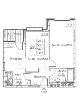 56 м2