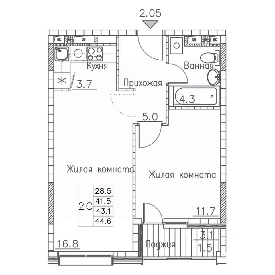 44 м² · Этаж 20 из 28
