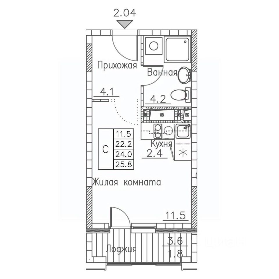 В продаже студия в корпусе 2 ЖК 'Сабанеева 125'. Квартира располагается на 2 этаже, общая площадь 23.3 м2.