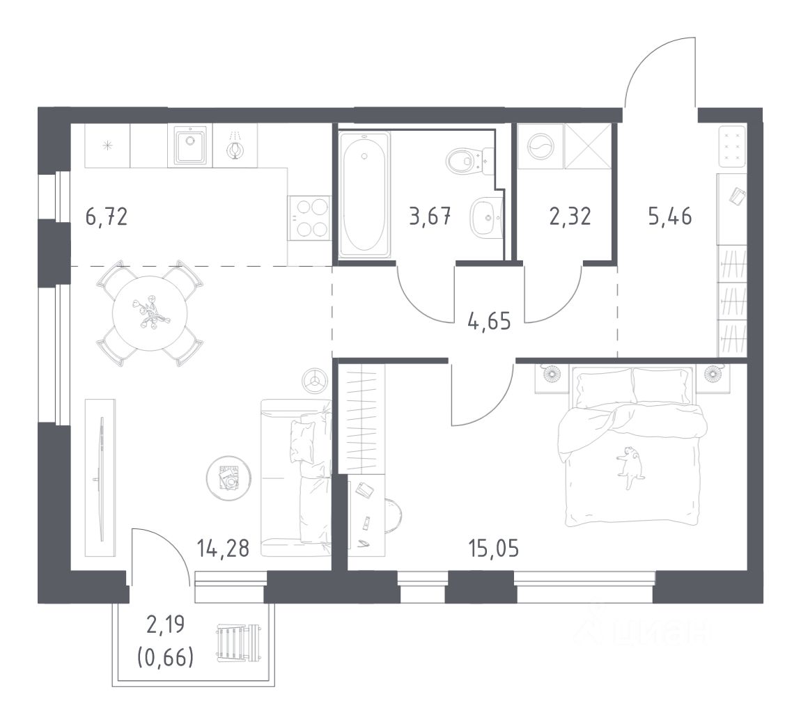 42 м² · Этаж 15 из 19