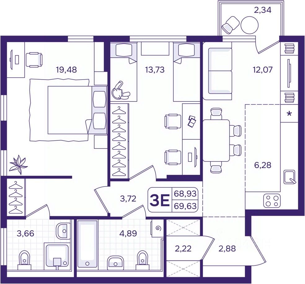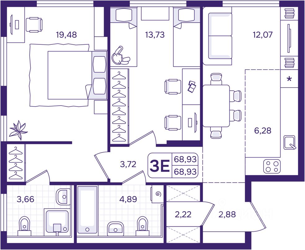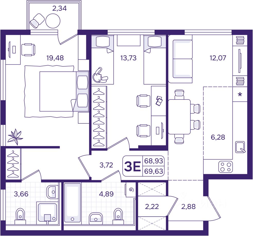69 м² · Этаж 13 из 17