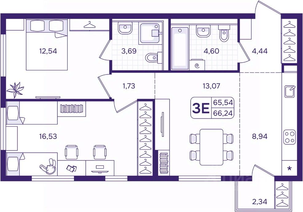 66 м² · Этаж 12 из 17