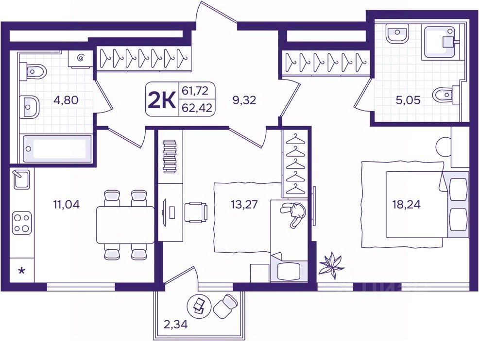 Просторная двухкомнатная квартира в ЖК ''Астон. А зори здесь тихие'' на 13 этаже. Квартира без отделки, полностью готова к ремонту. Общая площадь: 62.42 кв.м., жилая: 31.51 кв.м., площадь просторной кухни-столовой: 11.04 кв.м. Комнаты изолированные, все окна выходят на одну сторону. В квартире один балкон, два совмещенных санузла. Высота потолков 2.87 м. Дом монолитный, трехподъездный, высотой 17 этажей. Квартира находится в 1-й секции в корпусе 1. На этаже 4 квартиры. В подъезде 1 пассажирский и 1 грузовой лифт. Окончание строительства - 2 квартал 2028 года. Оформление сделки по договору долевого участия. ''Астон. А зори здесь тихие'' — жилой дом бизнес-класса, состоящий из трёх 17-этажных секций, объединенных общим стилобатом. В каждой секции по 2 лифта (пассажирский и грузопассажирский). Количество квартир на этаже — до 5. Для жителей дома предусмотрены подземный трехуровневый паркинг, кладовые помещения и коммерческая инфраструктура на первом этаже. Территория жилого комплекса продумана так, чтобы ее жителям было безопасно и комфортно: — закрытый двор без машин, система контроля доступа, — детские площадки с учетом разных возрастных групп, — воркаут-зона, — безбарьерная среда, — велопарковки, — колясочные. Срок сдачи: II квартал 2028 года. Расположение: Жилой комплекс расположен на Патрокле — одном из самых быстроразвивающихся районов города. В пешей доступности — парк у озера, четыре пляжа, кофейни, набережная, торговый центр. Рядом расположены несколько школ и детских садов, фитнес-клубы. В 10 минутах езды на автомобиле — Русский остров и бухта Золотой Рог, в 1 минуте — объездная дорога Седанка—Патрокл. Добраться в любую точку города быстро и легко. Способы покупки: — дальневосточная ипотека, — семейная ипотека, — IT-ипотека, — ипотека для участников СВО и их семей, — рассрочка, — рассрочка с дальнейшим выходом в ипотеку. Можно воспользоваться материнским капиталом и региональным сертификатом для частичной оплаты первоначального взноса. О застройщике: Строительство проекта ''Астон. А зори здесь тихие'' осуществляет федеральный застройщик Астон. Проекты Астон — это современные жилые кварталы с вниманием к деталям и продуманным благоустройством в 4 городах России: Екатеринбурге, Новосибирске, Тюмени и Владивостоке. #zMDODd