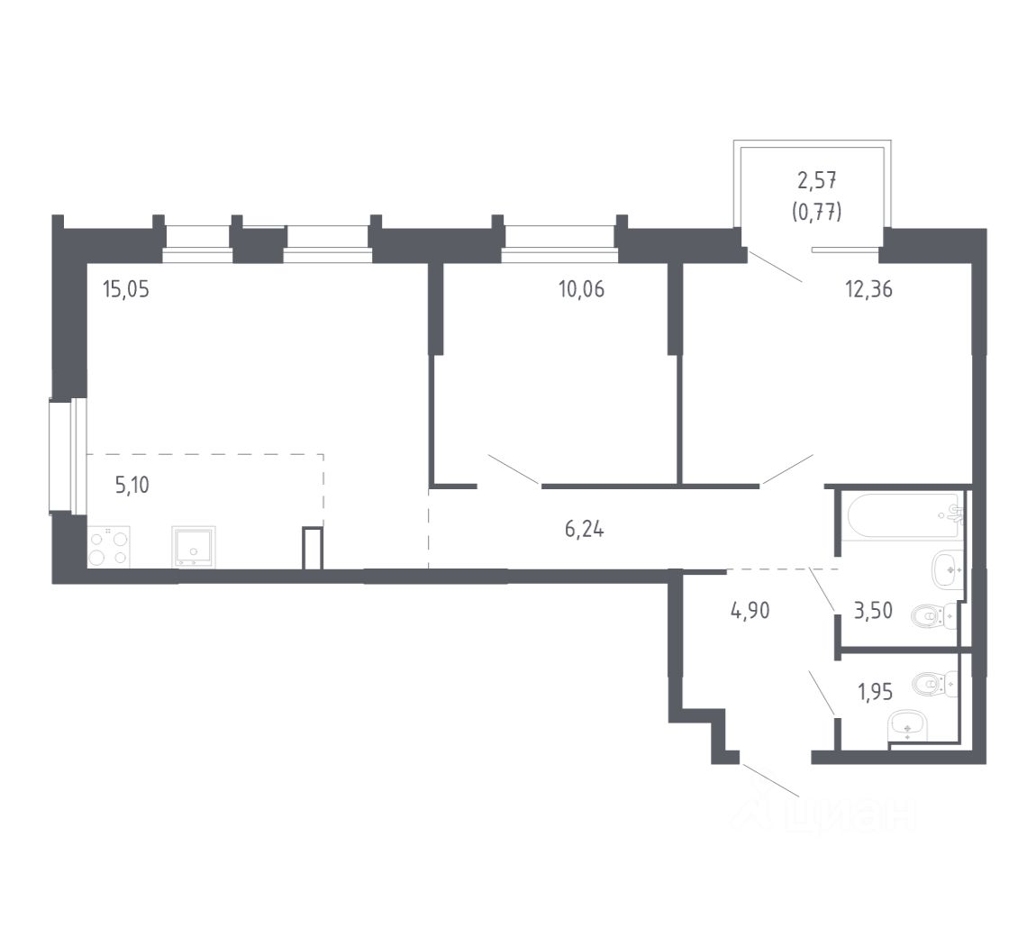 В продаже 3-комнатная квартира в корпусе 3 ЖК 'Сабанеева 125'. Квартира располагается на 25 этаже, общая площадь 76.7 м2.
