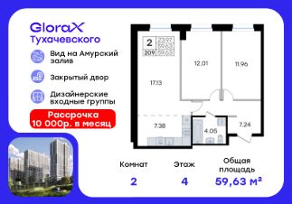Продается 3-комн. квартира на 3-м этаже в квартале GloraX Клубный. GloraX Клубный - уникальный видовой проект с выделяющейся архитектурой в развитом районе Владивостока. Общая площадь лота составляет 64,62 кв. м, из которых 33,68 кв. м отведено под жилую и 20,12 кв. м под кухонную зону. Номер квартиры - 10.Преимущества квартиры:просторная квартира с 3 спальнями и кухней-гостиной, вид на море, угловая, мастер-спальня.Преимущества проекта:• Квартиры с панорамными видами на бухту Патрокл, маяк Басаргина и остров Русский• Планировочные решения под любой жизненный сценарий от 23 до 67 м²• Гардеробные комнаты, увеличенные панорамные окна, просторные кухни-гостиные• Эксклюзивное благоустройство: продуманное зонирование, игровые и спортивные площадки, площадка для стритбола, амфитеатр• Премиальный дизайн входных групп с лаунж-зоной• Безбарьерная среда, закрытая территория, видеонаблюдение• Лапомойки, колясочные и туалеты на первом этаже• Двухуровневый подземный паркинг на 350 машино-мест с лифтом на жилые этажи• Келлеры на цокольном этаже для хранения сезонных вещей с доступом на лифте• Современный ландшафтный дизайн комплекса от DEREVOPARKGloraX Клубный заповедник в черте мегаполиса. Комплекс тщательно продуман для максимального удобства и обеспечения безопасности его жителей. Квартал расположен в одном из самых современных развивающихся районов города: совсем рядом раскинулась живописная бухта Патрокл, где можно прогуляться по облагороженной пешеходной набережной, заглянуть на пляж или в школу серфинга. Комплекс имеет прекрасную транспортную доступность: рядом проходит объездная трасса СеданкаПатрокл, а до центар можно доехать всего за 15 минут.Проект включает 3 монолитных корпуса, каждый из которых спроектирован с акцентом на комфорт, безопасность и современный образ жизни рядом с уникальной природой. Общий двор создает приватную территорию для житей комплекса.В комплексе предусмотрен двухуровневый подземный паркинг на 350 машино-мест с доступом прямо с жилых этажей. Паркинг оборудован современными системами видеонаблюдения, контроля въезда-выезда и пожаротушения. На цокольном этаже размещаются келлеры для хранения сезонных и габаритных вещей. Доступ к кладовым на лифте с жилых этажей. Современный ландшафтный дизайн жилого комплекса GloraX Клубный создан ведущей российской студией DEREVOPARK. Во дворе для детей всех возрастов предусмотрены различные игровые площадки с лазалками, батутами, качелями и песочницей. В центре расположен специальный ''зеленый остров'', где взрослые могут отдохнуть на качелях и гамаках в тени больших деревьев. Для любителей спорта предусмотрены две специальные спортивные площадки для настольного тенниса и стритбола — для зрителей тоже найдется место! А еще на территории комплекса будет дорожка для роллеров и любителей покататься на велосипеде, самокате или скейте.В шаговой доступности располагаются все необходимые объекты социальной
