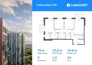 Предлагается 3-комнатная квартира комфорт-класса 79 кв.м в корпусе 1.3 на 14 этаже, в ЖК ''Сабанеева 125''Квартира без отделки. Доступность опции ''отделка'' и возможность комплектации мебелью и декором уточняйте у застройщика.Приобрести квартиру возможно по специальным акциям от застройщика, с текущими условиями акций можно ознакомиться в блоке ''Акций''.Цена динамическая и может отличаться, уточняйте актуальность у застройщика. В жилом комплексе ''Сабанеева 125'' вы ежедневно будете наслаждаться видами сопок. Холмистый рельеф защищает территорию от ветра. Комплекс расположен в Первореченском районе Владивостока, всего в 20 минутах на машине до центра города. На первых этажах откроются супермаркеты, кафе и пекарни. Для малышей — детский сад в 2 минутах пешком и школа в 10 минутах.За 6 минут можно доехать до Нагорного парка, а за 15 минут — до набережной Цесаревича с панорамой Золотого моста. Комплекс состоит из 3 монолитных домов высотой 25 этажей с фасадами, дизайн которых вдохновлен птицами Дальнего Востока. Дворы оформлены как сад с дальневосточной флорой, есть смотровые площадки, скалодром, перголы и игровые зоны для детей. Подземный паркинг — трехуровневый. В сквозные подъезды без ступеней и с помещением для колясок удобно заходить.В жилом комплексе ''Сабанеева 125'' есть квартиры с индивидуальными зелеными террасами, увеличенными окнами и панорамными балконами для чаепитий с видом на сопки и залив.