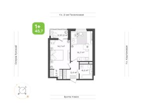Уютное пространство для самостоятельной жизниПросторная прихожая 5,4 кв.м с местом для шкафаКухня-столовая 16,7 кв.м место для ваших кулинарных экспериментов и отдыха за домашним кинотеатромСпальня 14,7 кв.м с выходом на лоджию, где можно наслаждаться свежим воздухом и красивым видом на окружающий пейзажГардеробная в спальне 2,5 кв.м позволит аккуратно разместить вещи, освободив место в комнатеВанная комната 4,5 кв.м с местом под стиральную машину