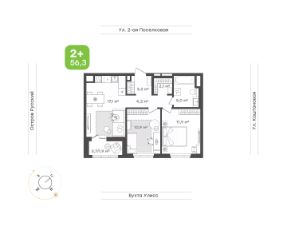 2,5-комнатная с мастер-спальней комфорт для всей семьиПрихожая 3,6 кв.м с местом для шкафаПросторная кухня-столовая 18,2 кв.м с лоджией подойдет как для тихих семейных вечеров за просмотром фильмов в домашнем кинотеатре, так и для шумного приема гостейУютная детская 14,3 кв.м, где можно грамотно разделить зоны для занятий и отдыхаСпальня 13,7 кв.м с собственной ванной комнатой максимальный комфорт для родителейОбщая ванная комната 4,3 кв.м с местом под стиральную машину