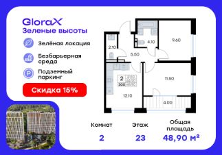 Продаётся 2-комнатная квартира в строящемся доме (Дом 1), срок сдачи: II-кв. 2027, общей площадью 57.26 кв.м., на 12 этаже.