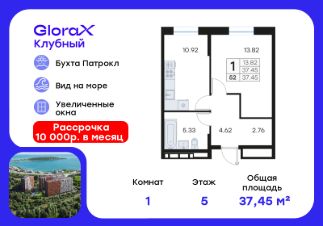 Продается квартира-студия на 3-м этаже в квартале GloraX Клубный. GloraX Клубный - уникальный видовой проект с выделяющейся архитектурой в развитом районе Владивостока. Общая площадь лота составляет 23,94 кв. м, из которых 10,70 кв. м отведено под жилую и 4,00 кв. м под кухонную зону. Номер квартиры - 227.Преимущества квартиры:студия, вид на море.Преимущества проекта:• Квартиры с панорамными видами на бухту Патрокл, маяк Басаргина и остров Русский• Планировочные решения под любой жизненный сценарий от 23 до 67 м²• Гардеробные комнаты, увеличенные панорамные окна, просторные кухни-гостиные• Эксклюзивное благоустройство: продуманное зонирование, игровые и спортивные площадки, площадка для стритбола, амфитеатр• Премиальный дизайн входных групп с лаунж-зоной• Безбарьерная среда, закрытая территория, видеонаблюдение• Лапомойки, колясочные и туалеты на первом этаже• Двухуровневый подземный паркинг на 350 машино-мест с лифтом на жилые этажи• Келлеры на цокольном этаже для хранения сезонных вещей с доступом на лифте• Современный ландшафтный дизайн комплекса от DEREVOPARKGloraX Клубный заповедник в черте мегаполиса. Комплекс тщательно продуман для максимального удобства и обеспечения безопасности его жителей. Квартал расположен в одном из самых современных развивающихся районов города: совсем рядом раскинулась живописная бухта Патрокл, где можно прогуляться по облагороженной пешеходной набережной, заглянуть на пляж или в школу серфинга. Комплекс имеет прекрасную транспортную доступность: рядом проходит объездная трасса СеданкаПатрокл, а до центар можно доехать всего за 15 минут.Проект включает 3 монолитных корпуса, каждый из которых спроектирован с акцентом на комфорт, безопасность и современный образ жизни рядом с уникальной природой. Общий двор создает приватную территорию для житей комплекса.В комплексе предусмотрен двухуровневый подземный паркинг на 350 машино-мест с доступом прямо с жилых этажей. Паркинг оборудован современными системами видеонаблюдения, контроля въезда-выезда и пожаротушения. На цокольном этаже размещаются келлеры для хранения сезонных и габаритных вещей. Доступ к кладовым на лифте с жилых этажей. Современный ландшафтный дизайн жилого комплекса GloraX Клубный создан ведущей российской студией DEREVOPARK. Во дворе для детей всех возрастов предусмотрены различные игровые площадки с лазалками, батутами, качелями и песочницей. В центре расположен специальный ''зеленый остров'', где взрослые могут отдохнуть на качелях и гамаках в тени больших деревьев. Для любителей спорта предусмотрены две специальные спортивные площадки для настольного тенниса и стритбола — для зрителей тоже найдется место! А еще на территории комплекса будет дорожка для роллеров и любителей покататься на велосипеде, самокате или скейте.В шаговой доступности располагаются все необходимые объекты социальной и коммерческой инфраструктуры.Цена указана при 100% оплате или стандар