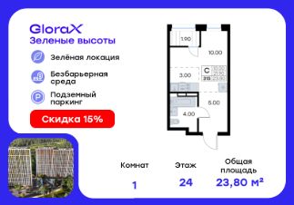 Продается квартира-студия на 24-м этаже в жилом квартале GloraX Зелёные высоты — проекте в тихой зелёной локации. Общая площадь квартиры 23,80 кв. м, из которых 10,00 кв. м включая 10,00 кв. м жилого пространства и 3,00 кв. м кухни. Номер квартиры - 315.Преимущества квартиры:зонируемая студия, лоджия.Преимущества проекта:• Идеальное сочетание городской и загородной жизни• Сдаем в 2025 году• Уютный зелёный район с развитой инфраструктурой• Великолепные виды на Вечнозеленый сквер и лесопарк на 150 Га• Видеонаблюдение, IP-домофон, Wi-Fi на территории,• Дизайнерские входные группы• Безбарьерная среда, колясочные, туалеты на 1 этаже, лапомойки• Эксклюзивное благоустройство территории • Подземный паркинг на 235 машино-мест с лифтом на жилые этажи• Индивидуальные кладовые от 3 до 7 кв. м• Черновая отделка для реализации любых дизайнерских идейGloraX Зелёные высоты — современный жилой проект, сочетающий преимущества городской и пригородной жизни. Комплекс тщательно продуман для максимального удобства и обеспечения безопасности жителей. Квартал расположен в зеленом, живописном и активно развивающемся районе Зеленый Угол, вдали от серой массовой застройки. Жители GloraX Зелёные высоты смогут насладждаться прогулками в Вечнозелёном сквере или лесопарке. В непосредственной близости находятся остановки общественного транспорта и автомобильный подъезд со стороны Нейбута. Скоро также появится выездом на трассу Де-Фриз-Седанка, что обеспечит быстрый доступ в любую часть города и пригород.Проект включает 2 корпуса, каждый из которых спроектирован с акцентом на комфорт, безопасность и современный образ жизни.В комплексе предусмотрен подземный паркинг на 235 машиномест с доступом прямо с жилых этажей. Паркинг оборудован современными системами видеонаблюдения, контроля въезда-выезда и пожаротушения. Цокольный этаж здания отведен под индивидуальные кладовые площадью от 3 до 7 квадратных метров, которые можно использовать для хранения сезонных вещей. Доступ к кладовым - на лифте с жилых этажей.Территория жилого квартала благоустроена и включает игровые зоны и спортивные площадки для детей различных возрастных групп, уютные зоны отдыха со скамейками и универсальную воркаут-площадку для активного досуга.В шаговой доступности располагаются все необходимые объекты социальной инфраструктуры.Узнайте больше в отделе продаж — выберите свою квартиру в GloraX Зелёные высоты уже сегодня!