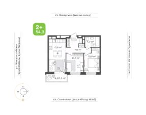 Коридор 9,1 кв.м. с пространствами для хранения с двух сторон, чтобы всем и всему хватило местаКухня-гостиная 17,7 кв.м. для времяпрепровождения всей семьиБалкон 4,2 кв.м. с видом на рассвет для душевных разговоровДетская 10,5 кв.м. хватит и для отдыха, и для продуктивной учёбы Спальня 10,9 кв.м. для вечернего расслабления и уединения от суетыВ санузел 4,7 кв.м. поместится и просторная ванна, и стиральная машина