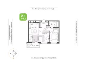 Коридор 9,1 кв.м. с пространствами для хранения с двух сторон, чтобы всем хватило местаКухня-гостиная 17,8 кв.м. для времяпрепровождения всей семьиБалкон 4,2 кв.м. с видом на рассвет для душевных разговоровДетская 10,5 кв.м. для отдыха ребёнка и продуктивной учёбы Спальня 10,9 кв.м. для вечернего расслабления и уединения от суетыВ санузел 4,7 кв.м. поместится и просторная ванная, и стиральная машина